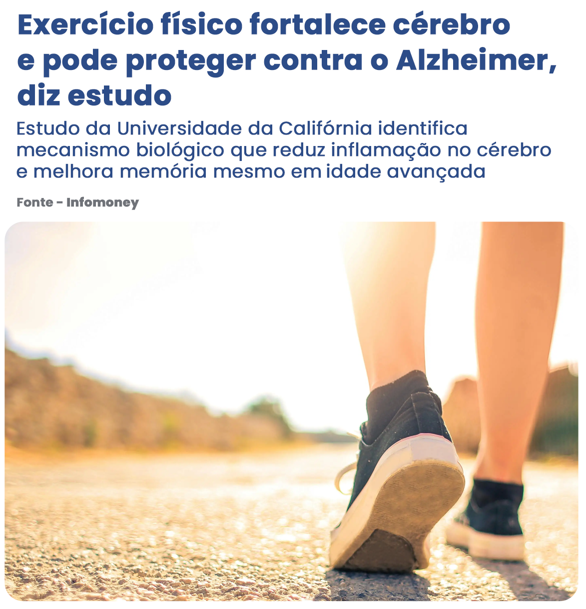 Cientistas da Universidade da Califórnia, São Francisco (UCSF) identificaram um processo biológico que pode explicar por que a prática de exercícios físicos melhora o raciocínio e a memória e ajuda a proteger o cérebro contra danos relacionados ao envelhecimento. Segundo o estudo, a atividade física fortalece o sistema de defesa natural do cérebro, reduzindo inflamações associadas ao declínio cognitivo e a doenças como o Alzheimer.
